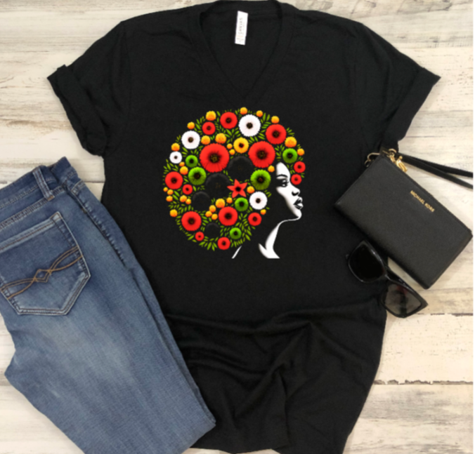 (Silhouette with floral afro design). Inquire at info@youchuz.com.